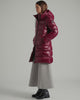 Notting Hill is a bestselling shiny longline puffer with insulation, subtle waist shaping a fixed hood, and inner collar.